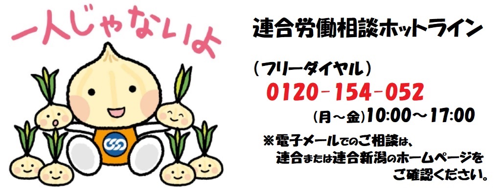 連合および連合新潟による労働相談につきましては、ゴールデンウィーク期間において、下記のとおり電話・メールによる相談受付を休止いたします。 |